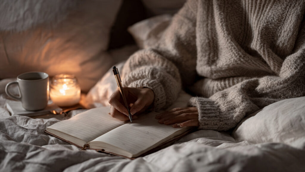Keep a notebook nearby and spend a few minutes jotting thoughts down. This simple action creates mental space and lowers stress. When your mind feels lighter, falling asleep becomes less of a struggle and more of a natural process.