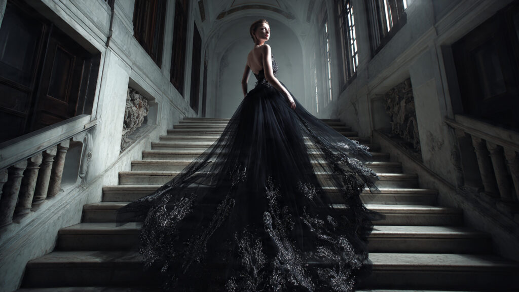 Tulle adds volume and drama, while silver embroidery introduces intricate detail. A black tulle dress feels whimsical yet glamorous, making it ideal for formal celebrations. The layered fabric creates movement and dimension.