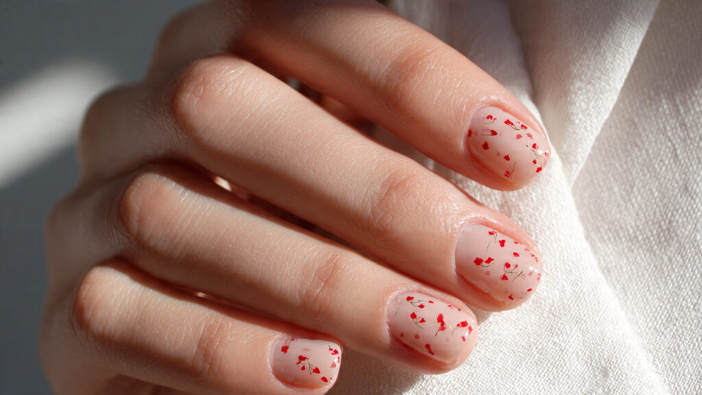 The key is keeping a consistent color palette. Mixing nude, red, and white tones helps everything feel intentional. This style works especially well on medium to long nails, where each design has space to shine.