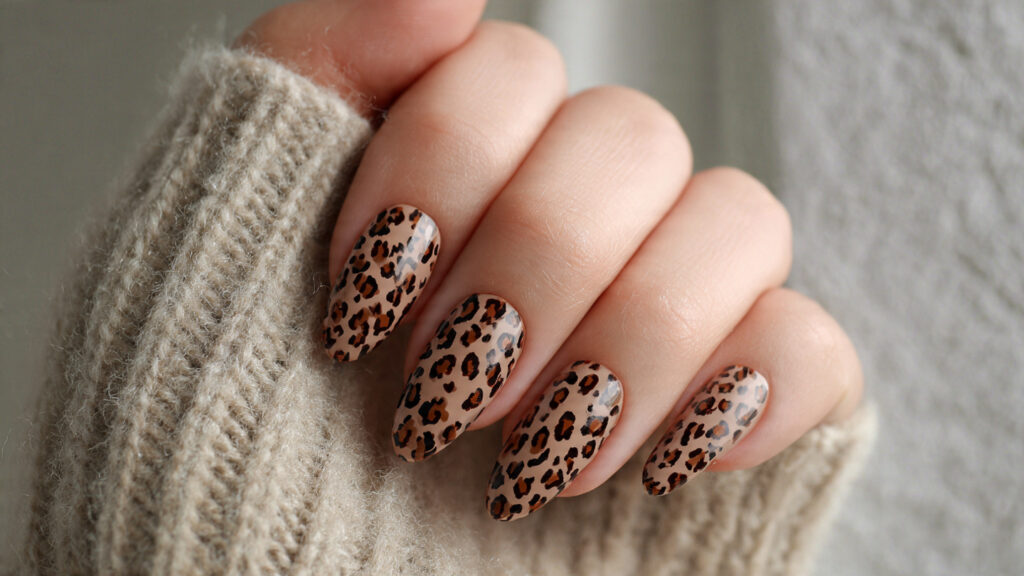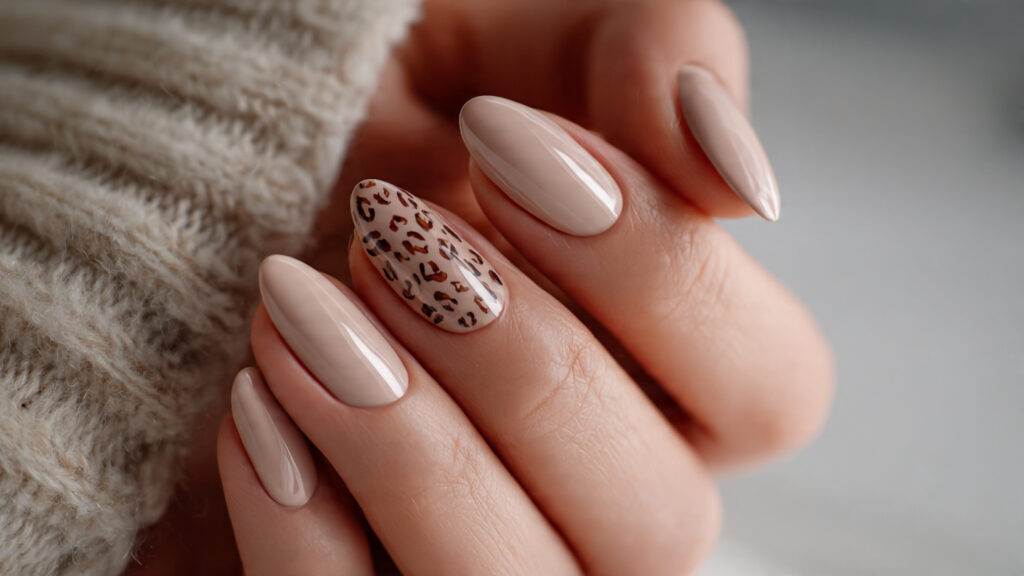 Accent leopard nails are perfect if you love subtle details. One or two leopard-printed nails paired with solid colors keep the look balanced and wearable. This style feels intentional and modern without being overwhelming.