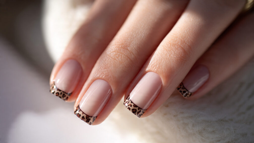 Leopard French tips put a creative spin on a classic manicure. Instead of solid white tips, leopard print adds texture and interest while keeping the base clean and natural. This design feels trendy yet subtle, making it perfect if you want something unique but not overpowering.