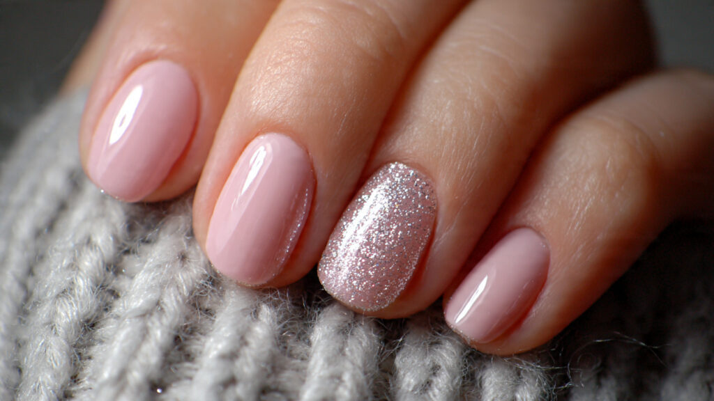 If you love sparkle but prefer subtle designs, a glitter accent nail is the perfect solution. Keep most nails in a soft neutral shade and add shimmer to one finger for a balanced look.