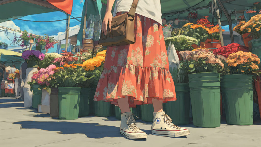 A floral midi skirt paired with a fitted tank creates a balanced silhouette that feels relaxed yet polished. The movement of a lightweight floral skirt adds softness, while a simple tank keeps the look structured and modern. Choose breathable cotton or linen for hot days, and opt for pastel florals or bold blooms depending on your mood. Neutral sandals and a woven bag complete the outfit effortlessly.