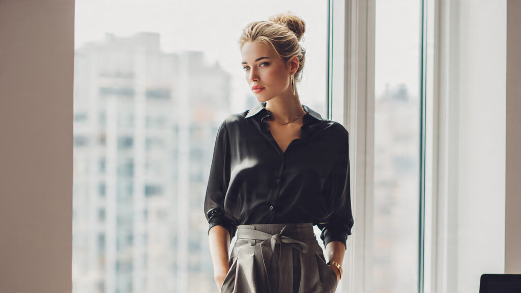 If you’re refreshing your wardrobe, these outfit ideas will give you stylish direction without overcomplicating things. Think tailored trousers, lightweight blazers, smart dresses, and elevated basics that work hard for you. Each look below includes a detailed image prompt to help visualize the aesthetic clearly.