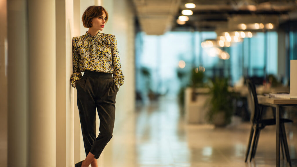 This combination is ideal for transitional weather. Add a thin belt or statement watch for subtle detail. It’s perfect for collaborative workdays or casual office settings while still looking intentional and refined.