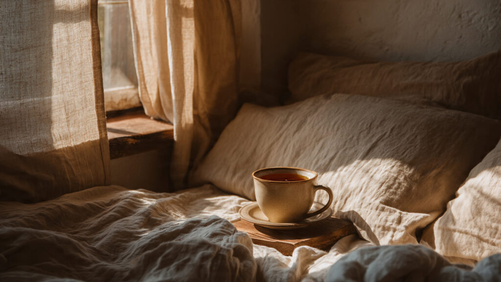 Use this time to drink water or herbal tea and set a gentle intention for your day. You can journal, sit in silence, or simply enjoy the stillness. This simple habit improves mental clarity and helps your skin and body feel more refreshed because stress levels are lower and sleep patterns improve naturally.