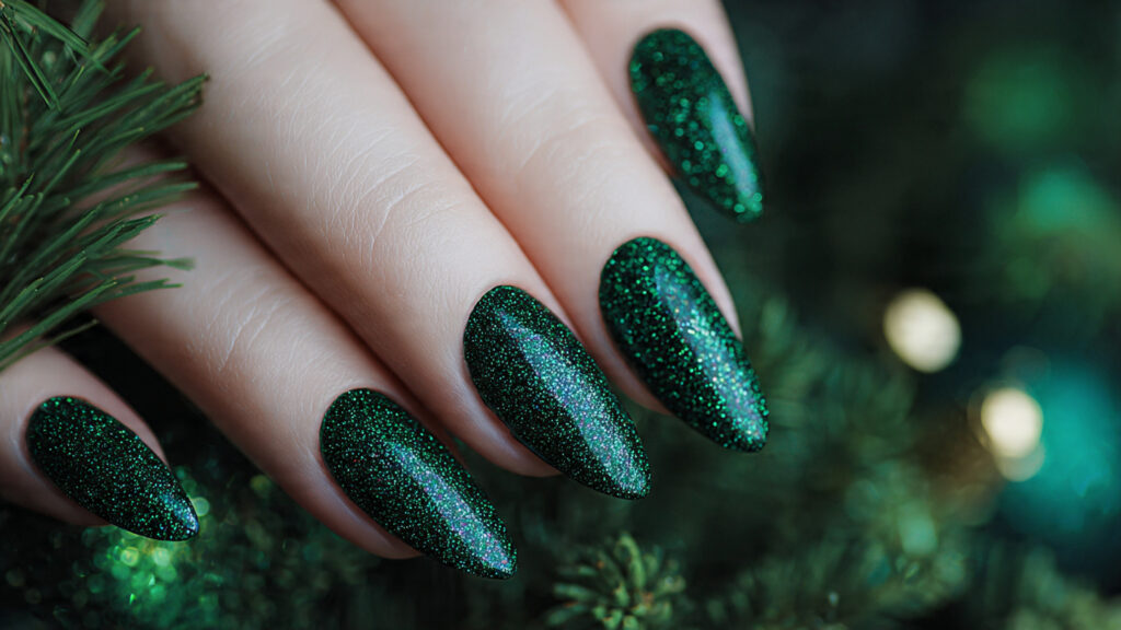 7. Emerald Green Glitter Nails