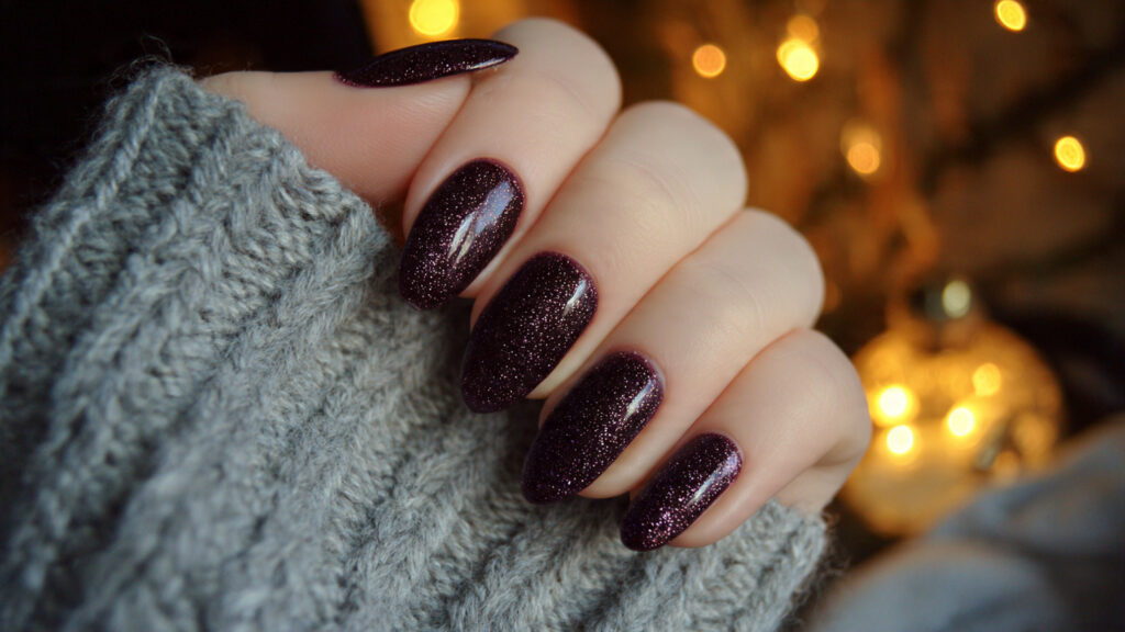 11. Plum Glitter Winter Nails