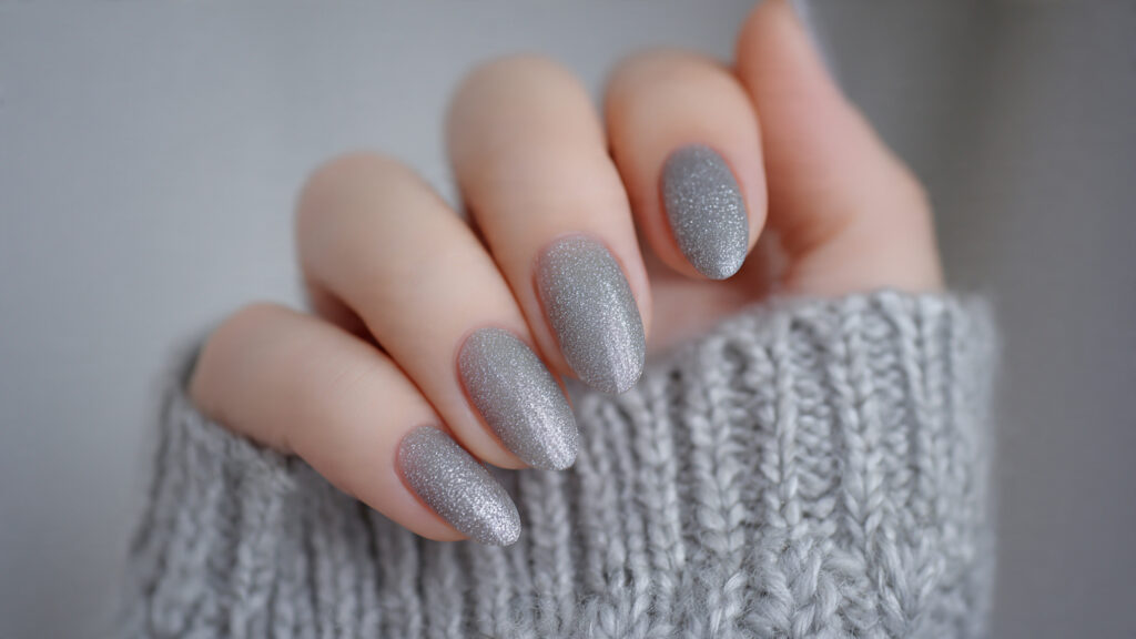 Grey pairs effortlessly with winter wardrobes, making it an easy choice for everyday wear. The sparkle catches light subtly, giving your nails a refined finish that feels both stylish and practical.