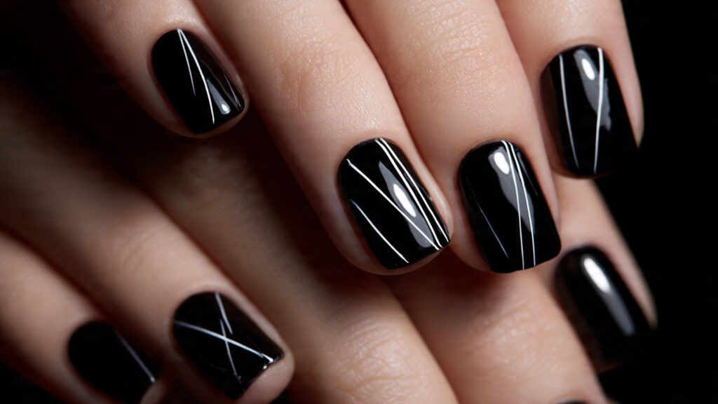 11. Black Micro-Detail Line Nails