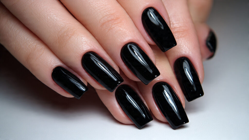 Long black nails make a bold statement. The length amplifies the color’s impact, creating a confident and expressive look. This style is unapologetic and powerful.