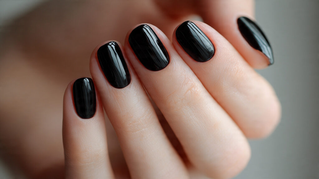 What elevates this look is precision. Smooth application, crisp edges, and healthy cuticles make all the difference. Medium-length square or squoval shapes keep it modern rather than dramatic. If you want a manicure that feels confident, timeless, and easy to maintain, glossy black nails never disappoint.