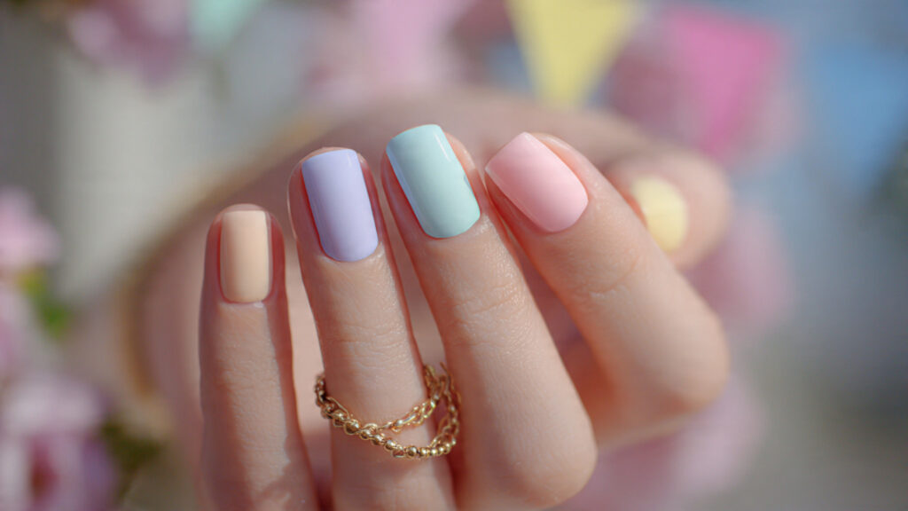 To keep the look fresh, alternate pastel colors on each nail or create simple diagonal color blocks. This manicure works well with flowy dresses, light denim, and neutral outfits. The gentle palette adds personality without overpowering your style, proving that celebration can be expressed through softness as well as boldness.