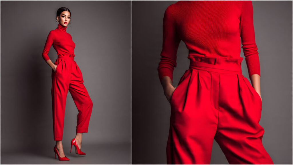Red and white together create a fresh, crisp look that feels light and stylish. A red top paired with white wide-leg pants is perfect for warmer days when you want something bold yet breathable. The wide-leg silhouette adds elegance and comfort.