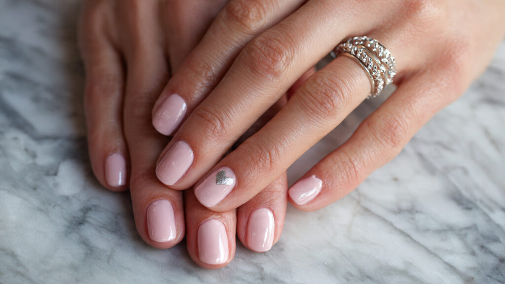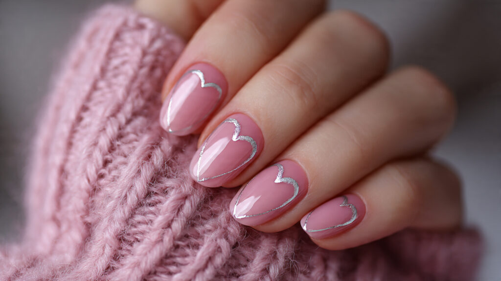 A soft pink base paired with a single silver chrome heart creates a beautiful balance between sweet and modern. The metallic heart stands out without making the design feel busy, which works especially well on shorter nails where space is limited.