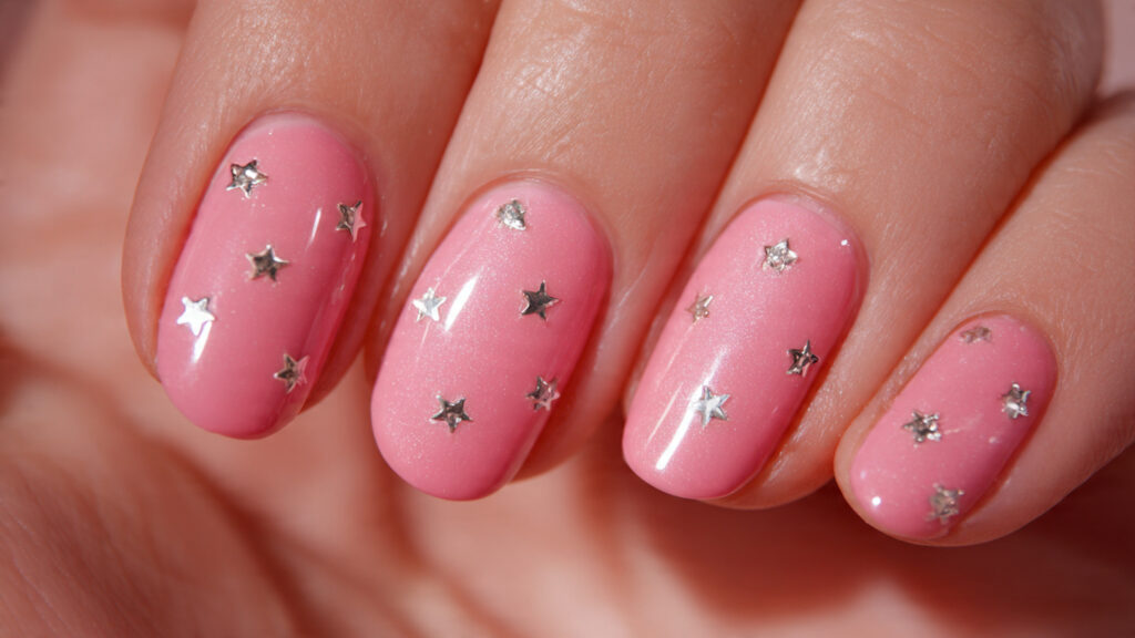 Chrome stars add a whimsical touch while keeping shine. They look cute but still stylish.