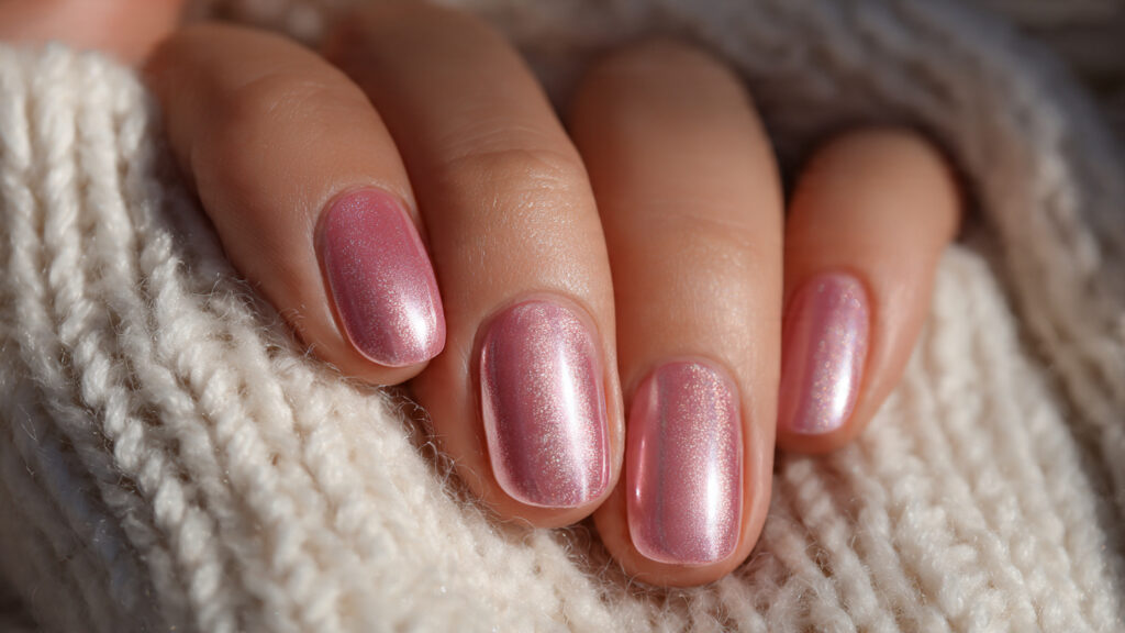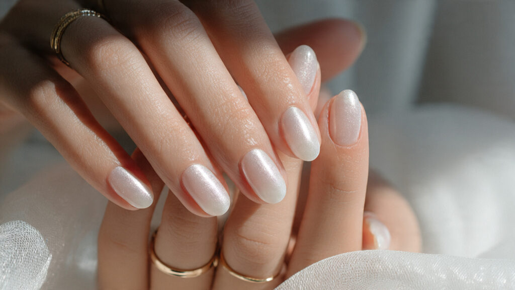 Pearl chrome gives a soft, luminous finish that looks elegant and light. The subtle shimmer makes nails glow rather than shine sharply, which feels delicate and romantic.