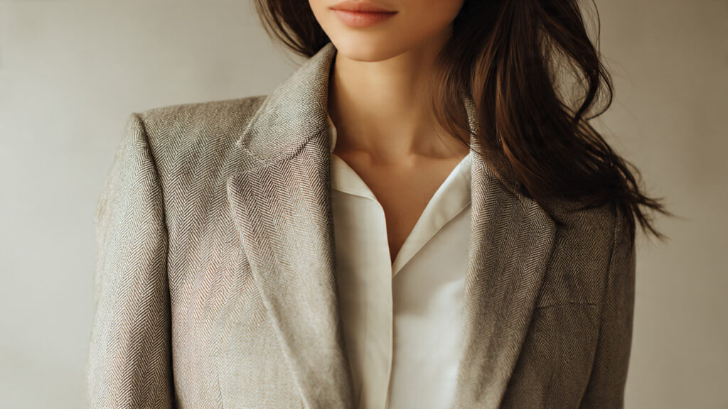 A structured blazer adds polish while providing shape. When worn open, it creates clean vertical lines that visually slim the upper body. Darting and subtle tailoring prevent the blazer from feeling boxy or tight across the chest.