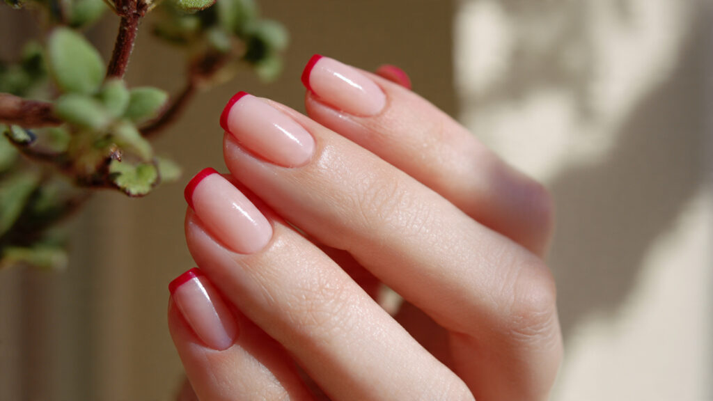 Because shorter nails chip less, this style lasts longer with minimal upkeep. Choose a creamy red finish to keep the look soft rather than overly bold. Regular filing maintains the square shape, and applying hand cream keeps the skin smooth, which enhances the overall polished impression.