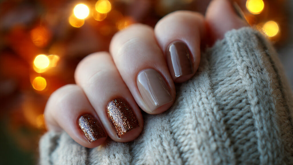 🍂 4. Warm Brown and Nude Nails