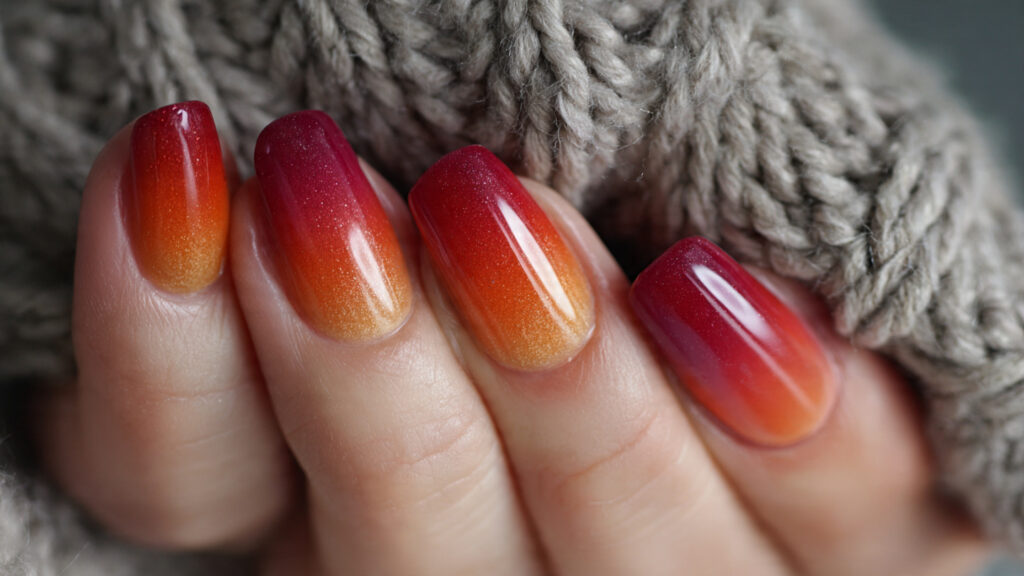 Ombre nails look best when blended smoothly. They’re eye-catching without being overwhelming and perfect for fall photos.