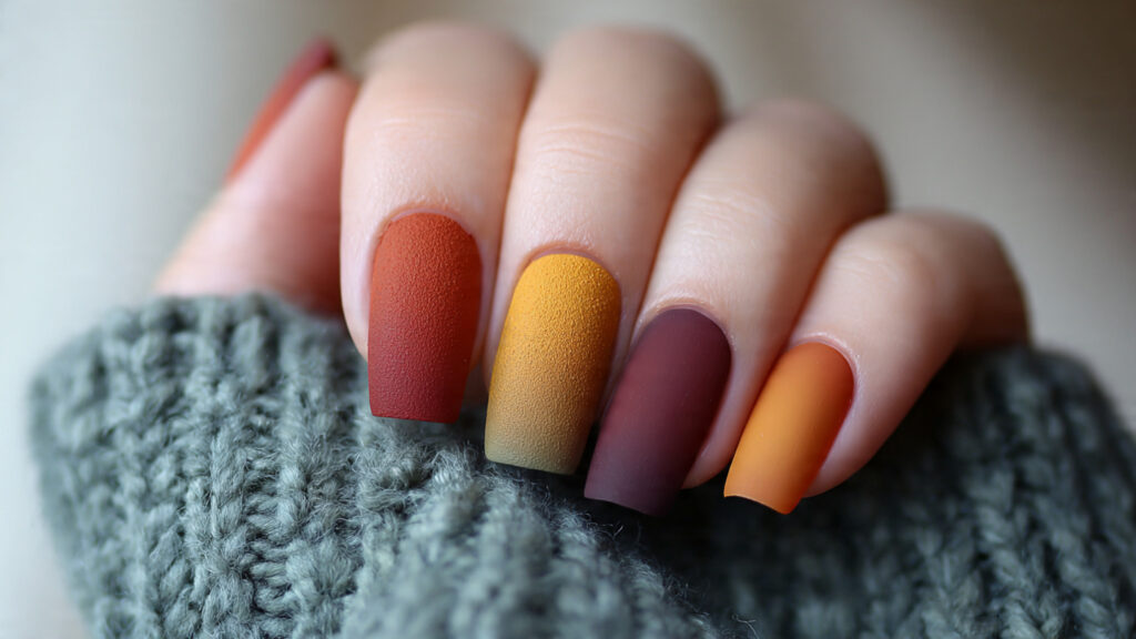 🍂 7. Matte Fall Color Nails