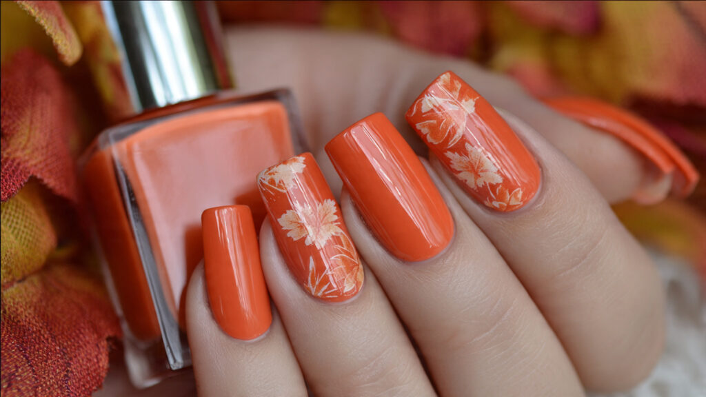 🍂 1. Classic Pumpkin Orange Nails