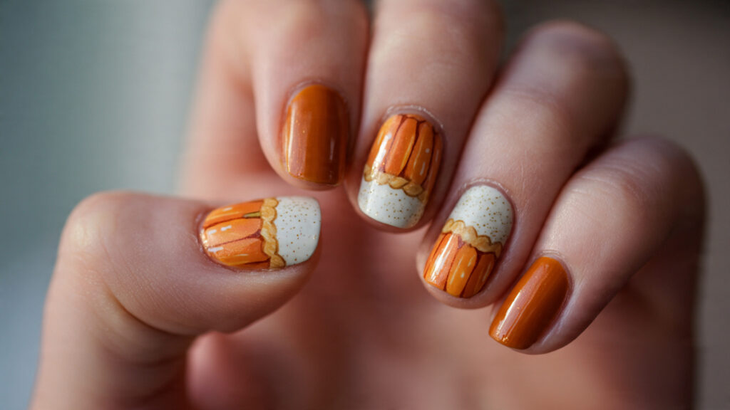 🥧 8. Pumpkin Pie Inspired Nails