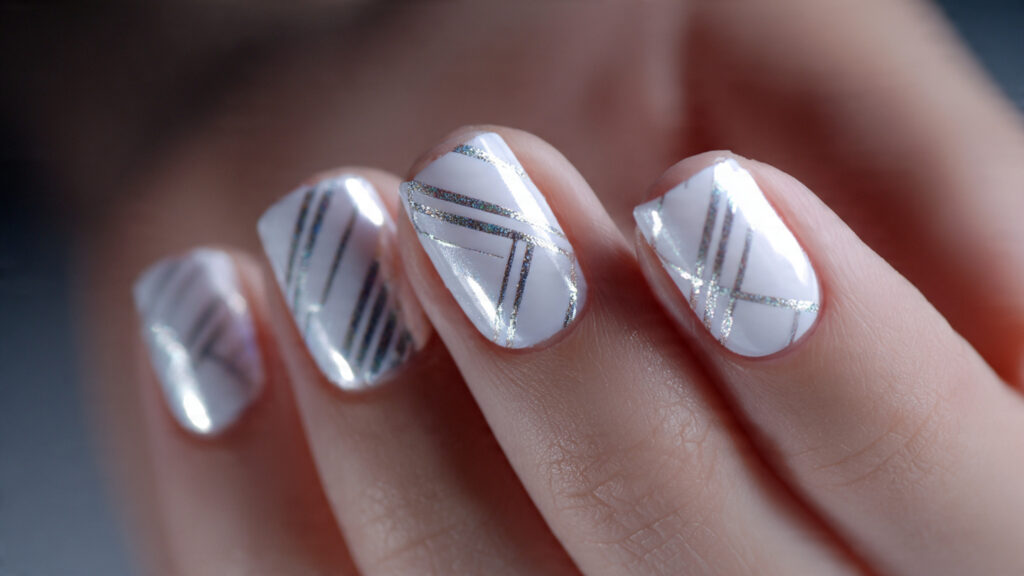 This look is all about soft shine and simplicity. A milky white base under chrome powder creates a creamy glow instead of a harsh metallic finish. It’s perfect if you want something polished that still feels subtle. The reflection catches light beautifully, especially outdoors, making your hands look fresh and well-groomed without trying too hard.