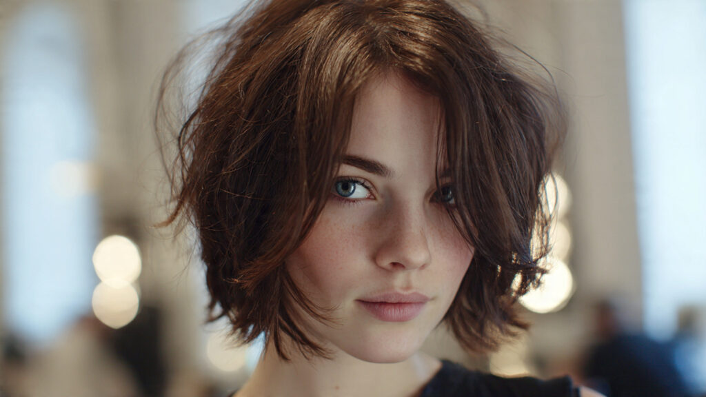 This short layered bob is designed to lift the crown and create fullness. The layers add height, making the hair look thicker and more dynamic. It’s especially flattering for women who want a bold, confident style.