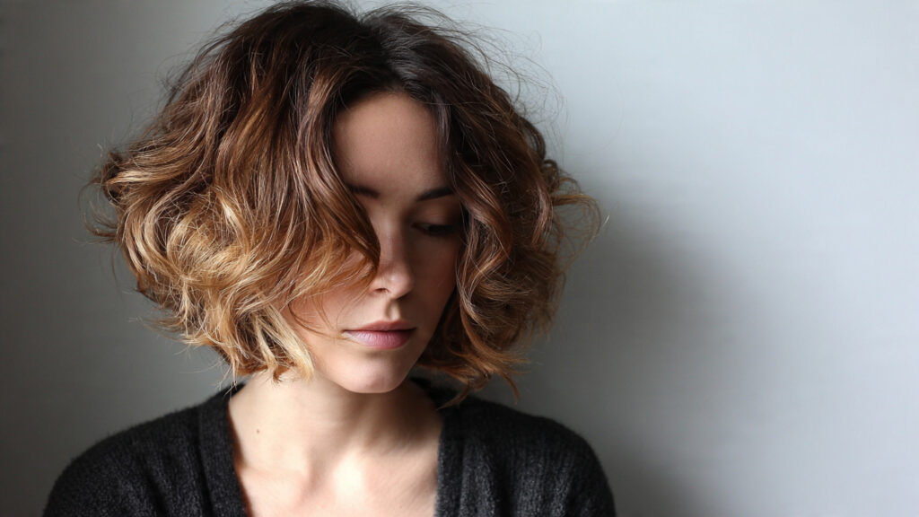 This layered bob is shaped to support natural curls. The layers reduce bulk while allowing curls to form naturally. The result is balanced and full of personality.