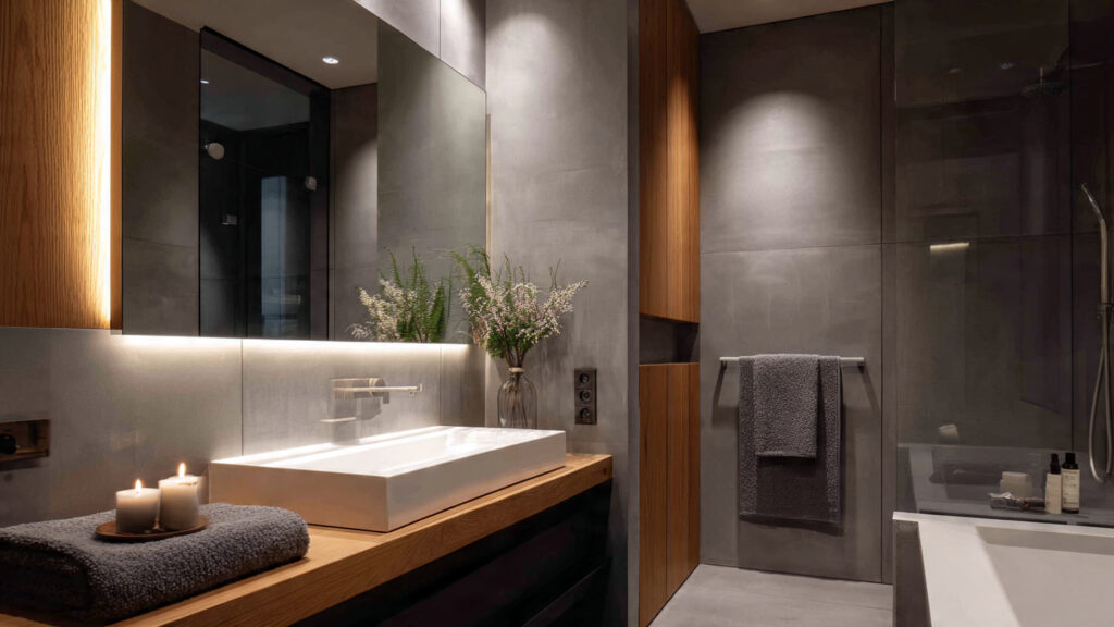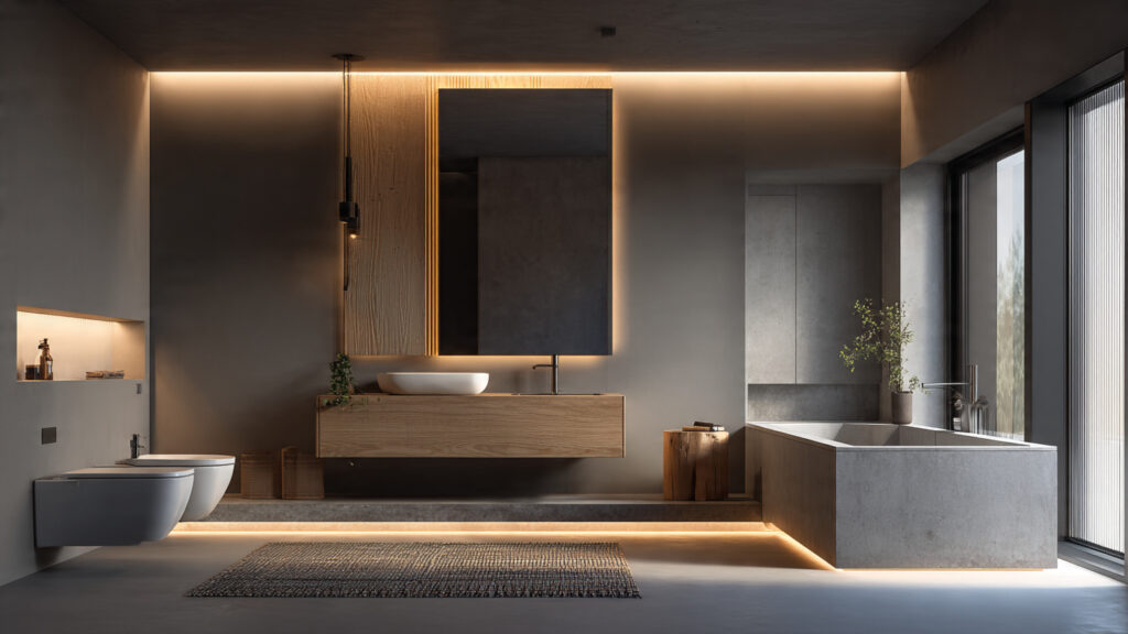 Lighting design plays a crucial role in shaping the mood of modern bathrooms. In 2026, layered lighting strategies are standard. Ambient lighting provides overall illumination, while task lighting ensures functionality around mirrors and vanity areas.