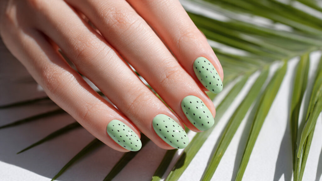 Use creamy pastel polishes and keep the seed details small and delicate. A glossy top coat enhances the softness of the shades. This manicure looks beautiful against light summer fabrics and neutral outfits.
