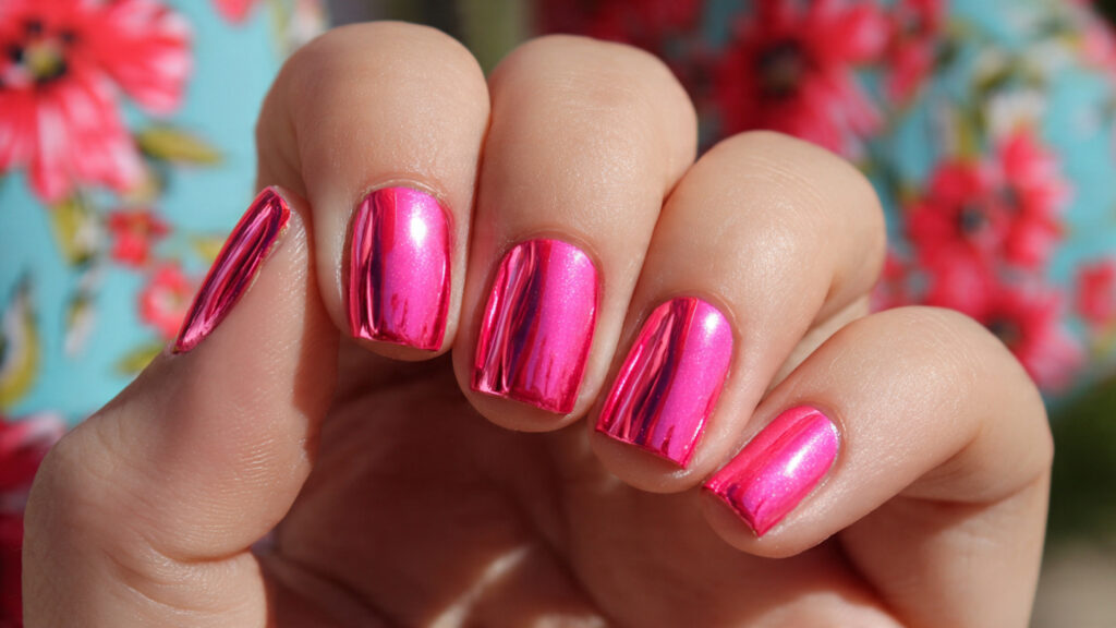 Pink chrome nails are fun, vibrant, and full of personality. The metallic finish transforms a simple pink shade into something bold and modern. This style works beautifully for vacations, parties, or whenever you want a cheerful manicure.