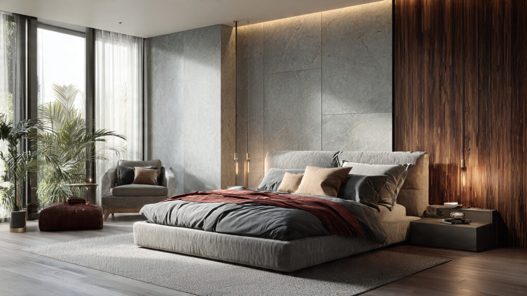Materials play a key role in shaping the overall feel of the space. Natural wood, textured fabrics, stone-inspired surfaces, and matte finishes add depth and sophistication without overwhelming the design.