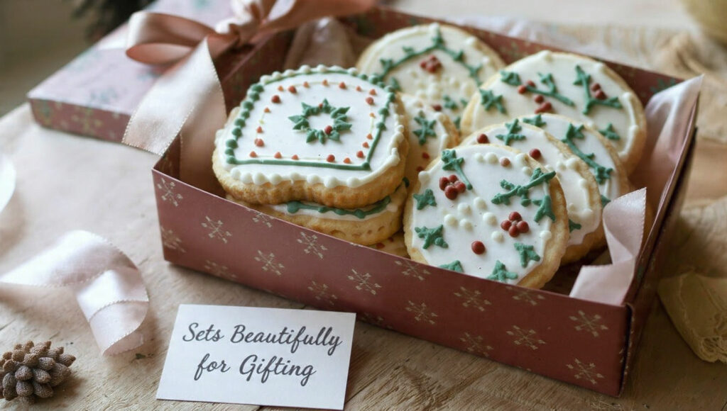 Frosted cookies can sit at room temperature in a sealed container for 2–3 days.