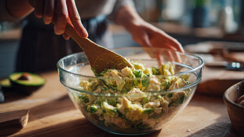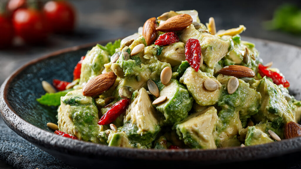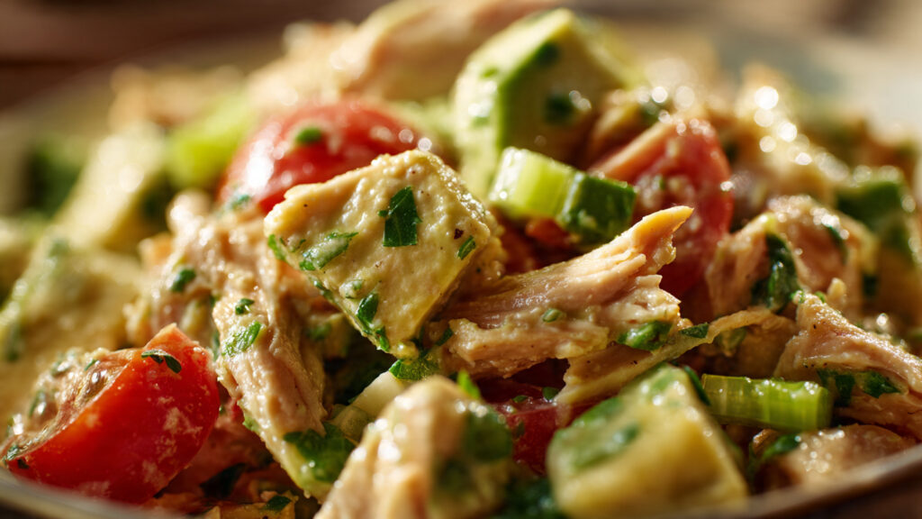 Unlike traditional chicken salad, this version skips heavy mayonnaise. Instead, creamy avocado adds natural richness. Therefore, the salad feels light yet satisfying at the same time.