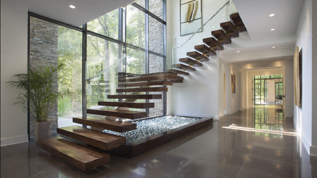 Floating stairs are among the most striking home stair ideas. These designs feature treads that appear suspended in mid-air, creating a dramatic visual effect. Floating stairs work especially well in modern interiors, adding architectural interest without overwhelming the space. Paired with glass or slim metal railings, they deliver a clean, sophisticated appearance.