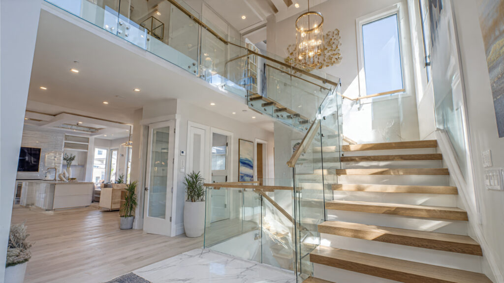 Glass railings are perfect for creating an open and airy feel. They allow natural light to flow freely between levels, making interiors feel brighter and more expansive. Glass pairs beautifully with wood, metal, or concrete stairs, offering a modern look that suits many design styles.