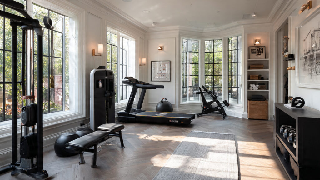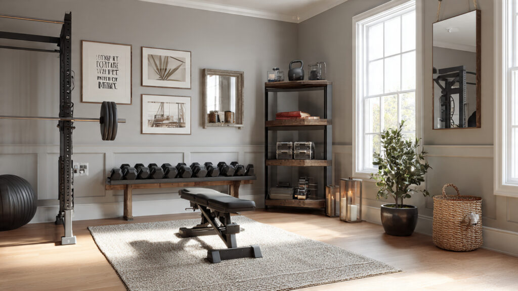Flooring plays a vital role in both aesthetics and performance. Rubber mats, foam tiles, or hardwood-style vinyl provide durability while complementing interior décor. Layering a workout mat over sleek flooring adds comfort without sacrificing design. Choosing high-quality flooring helps protect joints and equipment while enhancing the overall look of your home gym.