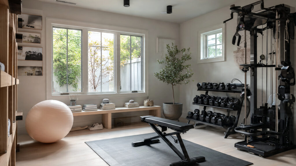 Designing a stylish home gym starts with layout planning. Begin by identifying how much space you have and what type of workouts you prefer. Strength training may require open floor areas, while yoga or pilates benefit from calm, uncluttered zones. Keep walkways clear and position larger equipment along walls to maximize movement space. A well-organized layout improves flow, safety, and visual balance.