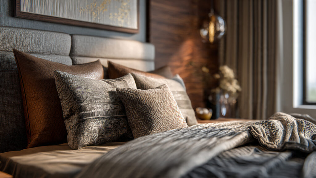 Rather than bold prints, 2026 trends favor subtle textures and soft patterns. Upholstered headboards, textured wall finishes, and layered bedding add depth without making the room feel busy. These details enhance visual interest while maintaining harmony.