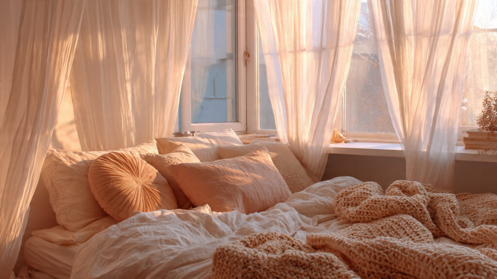 Texture still matters — but aim for softness rather than warmth. Linen bedding, cotton throws, and airy curtains instantly brighten a room and allow natural light to shine through.