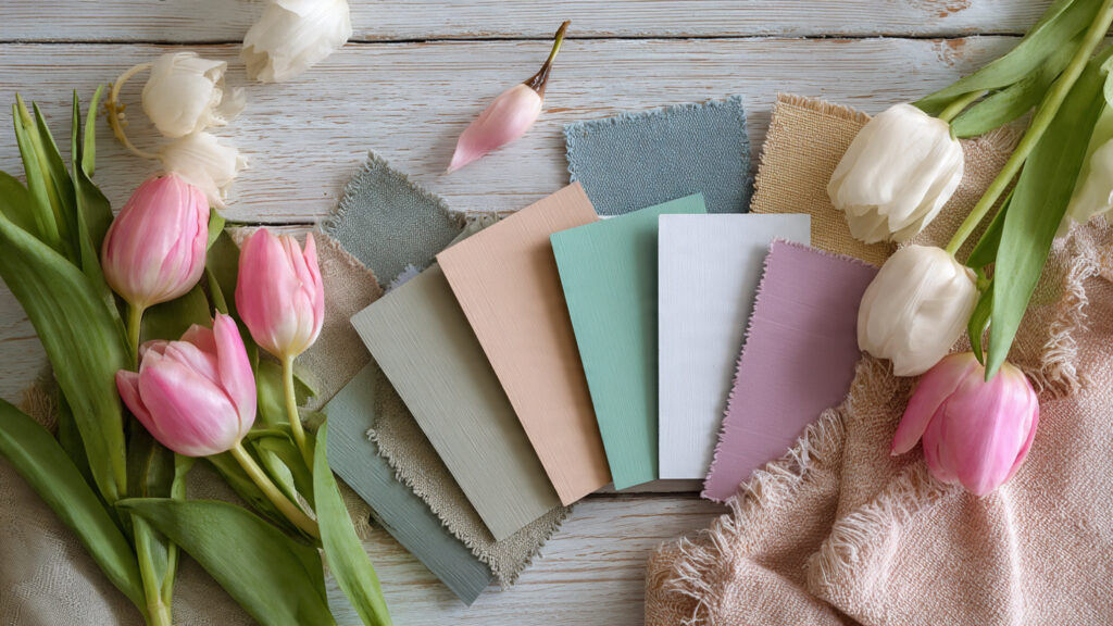 Color sets the emotional tone of your space. For spring, focus on soft, calming shades inspired by blooming flowers and clear skies.
