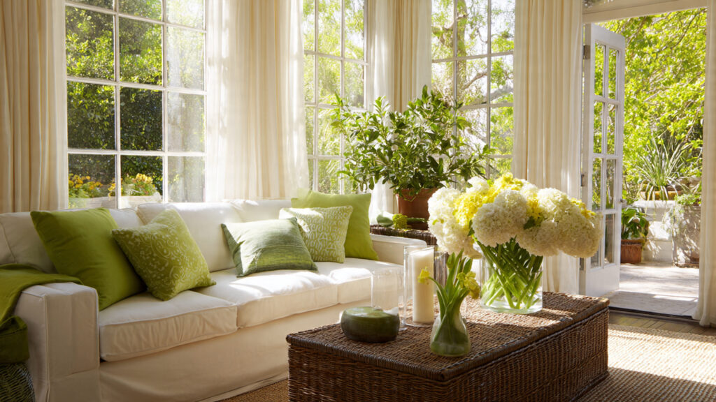 Spring is all about maximizing natural light. Removing heavy curtains and replacing them with sheer or lightweight fabrics allows sunlight to fill the room. Clean windows and reflective surfaces such as mirrors help amplify brightness. Spring decorating ideas for the home often rely on light-enhancing elements that create an open and airy feeling, making rooms feel refreshed without changing the layout.