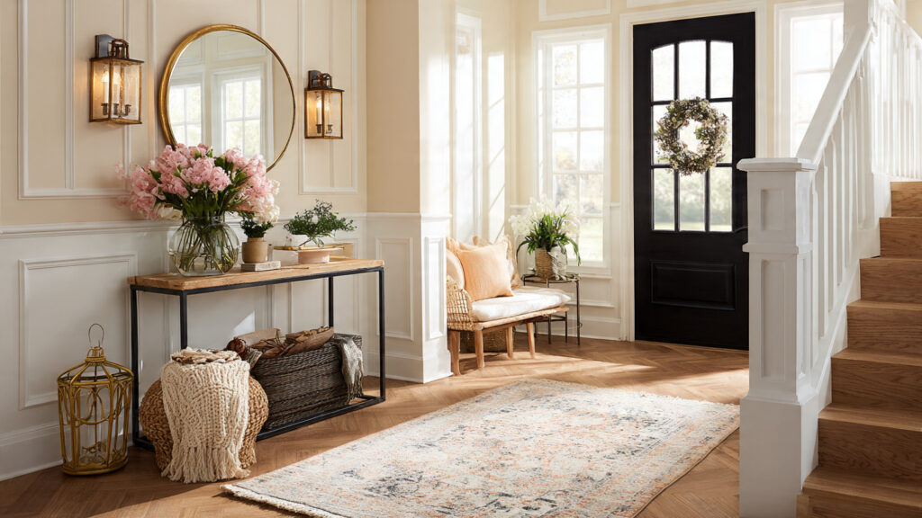 The entryway sets the tone for the entire home. Spring decorating ideas for the home encourage creating a welcoming entrance with seasonal wreaths, light rugs, and decorative accents. Simple updates like fresh flowers or pastel décor pieces make a strong first impression and instantly signal a seasonal transition.