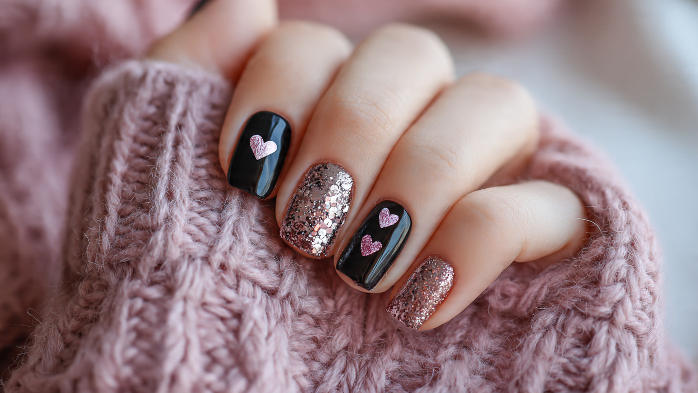 13 Cute Black Nails for Valentine’s Vibes