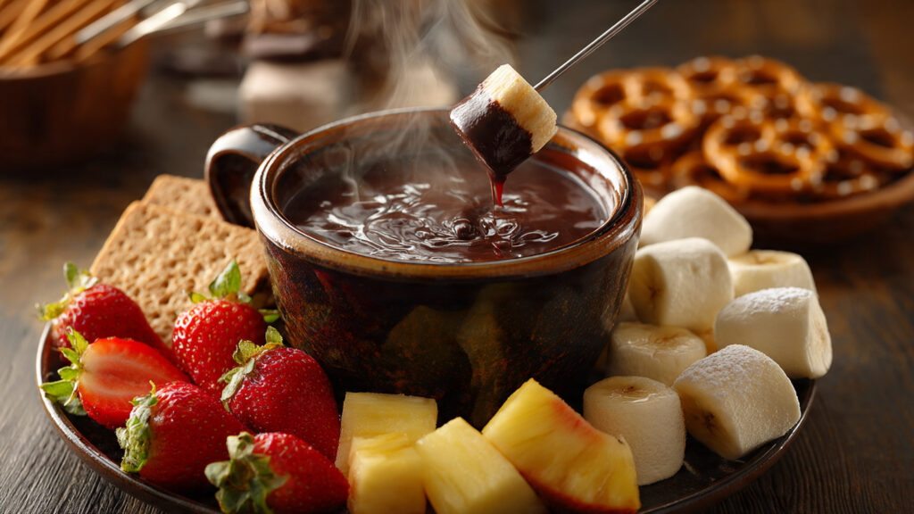 Fondue doesn’t have to stick to tradition. You can experiment with different cheeses, chocolates, and dipping items: