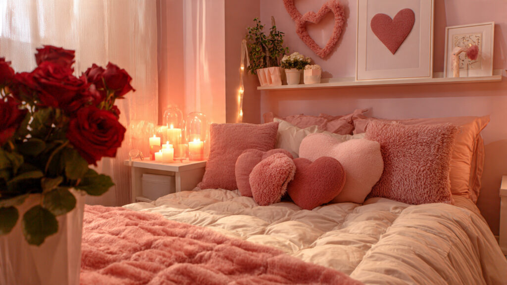 Textiles are essential for Valentine’s room decor. Fabrics like velvet, faux fur, satin, and soft knits enhance warmth and comfort. Cushions, throws, curtains, and rugs in romantic tones help soften the space. Valentine’s room decor ideas often focus on layering textures to create depth, comfort, and visual interest.